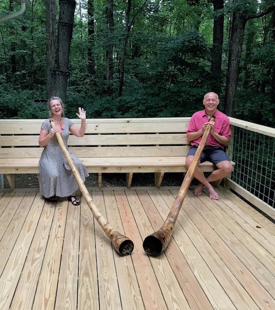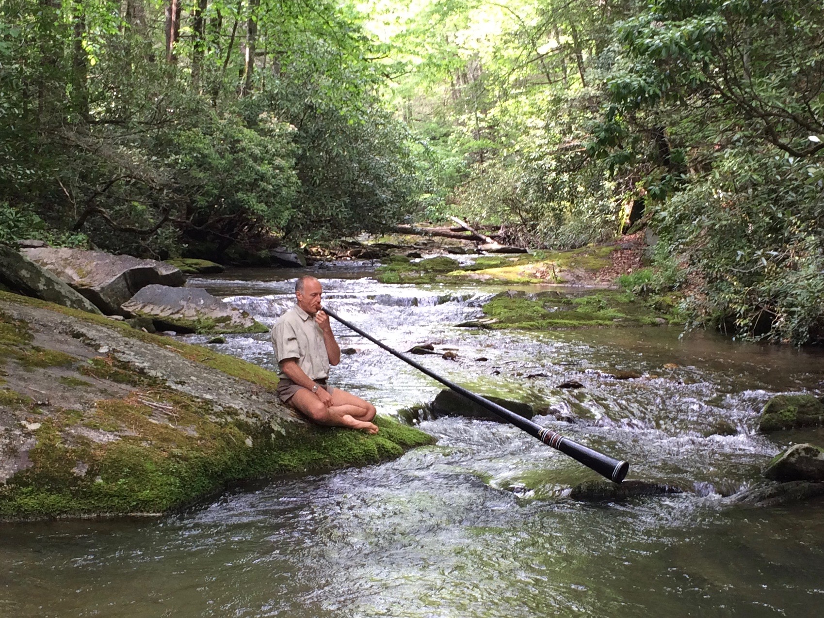 "Daran's classes are a wonderful oasis from a busy life. Learning the healing tones of the didgeridoo and linking them up to mindfulness meditation can be very centering and calming. Didge playing also helps me strengthen my respiratory system and tone my mouth, throat and abdominal muscles. It is an all-around way of keeping fit while having fun. I recommend Daran as a wonderful teacher and a peaceful presence." -Kathleen Murray, MSW, LCSW